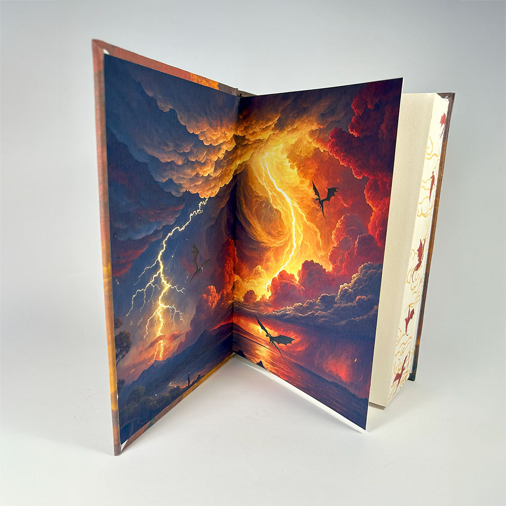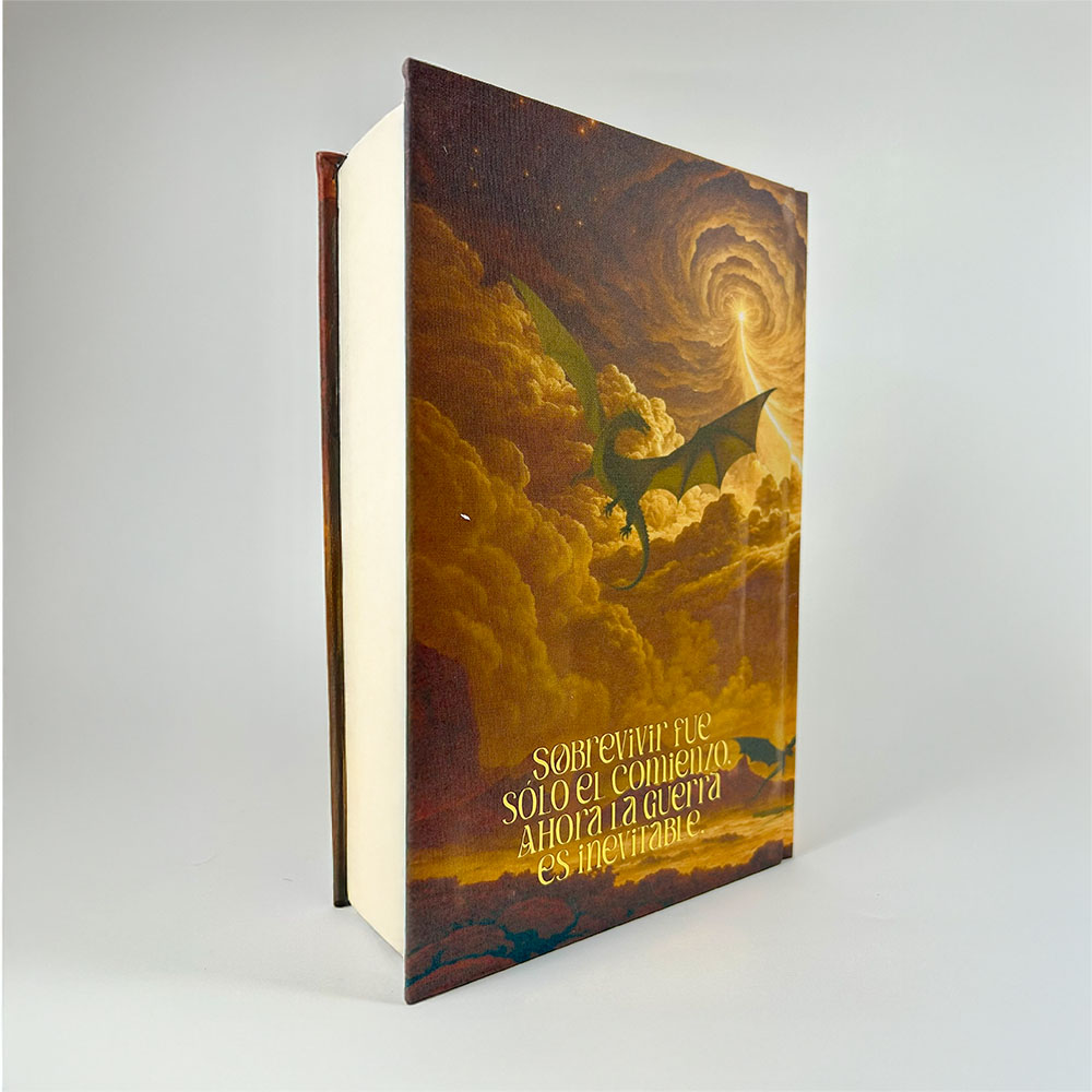 Partiendo del ejemplar original en tapa dura en español, esta versión ha sido completamente rediseñada a mano con una nueva cubierta inspirada en la tormenta, los dragones y la intensidad visual del universo de Basgiath.