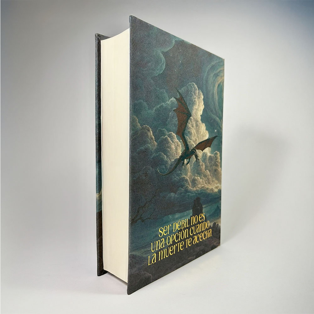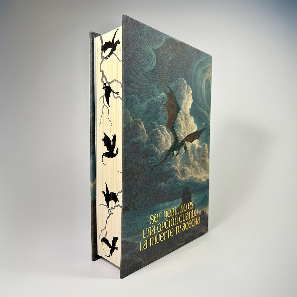 Esta edición parte del ejemplar original en tapa dura en español y ha sido rediseñada a mano con una nueva cubierta inspirada en la tormenta, los dragones y la intensidad del mundo de Basgiath.